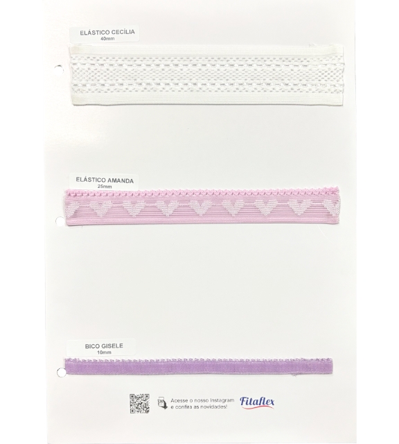 🔹 Elástico Amanda: Um equilíbrio perfeito entre funcionalidade e estética, o Elástico Amanda se destaca pelo detalhe encantador de corações ao longo de sua extensão. Com um acabamento refinado e um bico que valoriza ainda mais a peça, sua largura de 25mm permite aplicações diversas, garantindo charme e exclusividade.